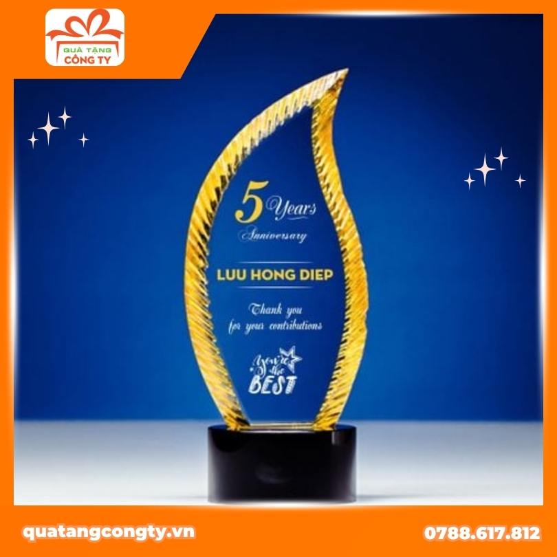 Trong những buổi lễ kỷ niệm, cúp pha lê luôn là món quà được mong chờ nhất. Ánh sáng long lanh của pha lê biểu trưng cho vinh quang, sự minh bạch và thành công bền vững. Việc trao tặng cúp cho cá nhân hoặc tập thể có thành tích xuất sắc chính là lời ghi nhận chân thành và trang trọng.
